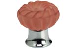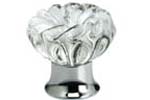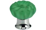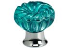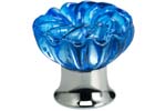 The Romantic Colored Glass Cabinet Knob is truly elegant. The flowing design defines sophistication--the free-flowing movement of the glass heightening the grace of the piece. This Colored Glass Cabinet Knob will look great in almost every decor, incorporating lovely detail without looking too over-the-top. It is available in 4 color choices (Transparent, Rose, Azure, or Jade) each of which can come either clear or frosted with either a polished brass or polished chrome base.