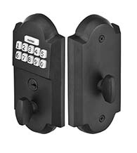 House keys are a thing of the past. Instead of carrying around keys, all you need is a single code. The Arched Keypad Front Door Lock can be programmed with up to 20 codes and comes factory programmed with 2 unique codes so you can use your new deadbolt right away. The Sandcast Bronze Electronic Keypad Deadbolt is operated by a keypad or key on the exterior side, and by a thumb turn on the inside. The Electronic Lockset is made from sandcast bronze and is available in flat black or medium bronze finishes.