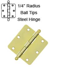 Residential Grade 0.085" thick, 3-1/2" x 3-1/2" x 1/4" Radius Corners with Ball Tips. Available in 7 different finishes. Package includes a pair of hinges, matching steel flathead, Phillips screws. Decorative ball tips are removable - female threaded onto each end of the steel hinge pin.