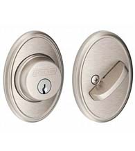 The Wakefield Single Cylinder Deadbolt comes in an array of beautiful finishes. It is suited to fit doors 1-3/8 inches up to 1-3/4 inches thick with either 2-3/8 inch or 2-3/4 inch backsets. The oval shape is perfect for traditional homes; and this Single Cylinder Deadbolt with Wakefield Trim is a great way to add classic elegance to any home.