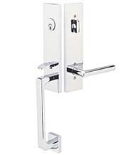 The Two Piece Denver Sandcast Bronze Handleset has an arched design that makes it a classic for traditional decors. It is this old world style, when paired with the rustic sandcast bronze material, that makes the Denver Entrance Handleset with Covered Deadbolt great for historic homes. The Denver Handleset is available in either single or dummy functions. It will fit either 2-3/8 inch or 2-3/4 inch backsets and can accommodate doors from 1-3/4 inches to 2-7/8 inches thick. This rustic handleset is available in 3 beautiful finishes: flat black bronze, medium bronze, and white bronze. This traditional handleset made by Emtek is available with your choice of interior trim lever or knob for a truly personal look.
