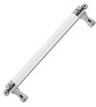 Available lengths of 9", 12", 18" or 24" in your choice of Frosted or Clear Acrylic. The detailed filigree end brackets of this truly unique decorative appliance door pull will add incredible beauty to your dishwasher and refrigerator doors.
