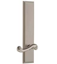 The Arc Tall Plate with Bellagio Lever is the perfect addition to stately doors found in historic homes. This 11 inch x 2-1/2 inch Arc Plate is sure to make a statement even on very large interior doors. The wave shape of the Bellagio Leverset is a classic because it adds grace and beauty to any space. This Wave Bellagio Lever with Arched Plate is available in dummy, passage, and privacy functions. Choose from Grandeur Hardware's most popular finish colors. It will fit 1-3/8 inch to 2 inch thick doors with 2-3/8 inch or 2-3/4 inch backsets.
