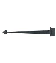 This Heavy Duty Heart Tip Hinge is ideal for garages, barns and gates. It not only adds an authentic finishing touch but is truly functional as well. Featuring a heart tip, this 36-3/4 inch long strap hinge is hand forged using traditional hammer and anvil techniques. Zinc and acrylic powder coated, it have a lifetime no-rust warranty. This strap hinge is rated at 600 pounds per pair and have been tested to 1,000 pounds without failure. The 30 Inch Heavy Door Heart Tip Strap Hinges is supplied with 1/4 inch by 3 inch stainless steel square head lags.