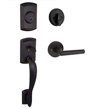 This stylish handleset features edged rectangle mounts. The deadbolt is operated by key outside, thumbturn inside; while the latchbolt underneath the deadbolt is operated by a turn knob inside and a thumbpiece outside. Ashfield Single Cylinder Handle Set is made by Kwikset and is backed by a lifetime mechanical warranty. Solid brass construction ensures it could last for many years to come. Good for 1-3/4 inch thick doors with 2-3/8 inch or 2-3/4 inch backsets.