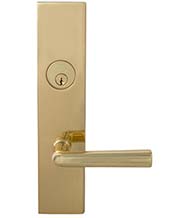 Omnia modern lever design available Polished Chrome and Polished Brass. For residential and commercial entry doors (for doors that require secure locking).