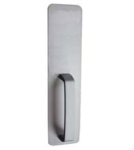 Pull plate for Global Touch Bar Exit Devices. Used to cover a pre drilled bore hole. This pull plate is used when installing a Panic Device on doors with pre drilled bore holes where an exterior door pull is desired for entry if the panic device is dogged.