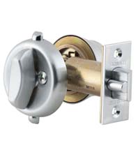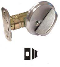Schlage One-Sided Turnbolt Deadbolt with universal adjustable backset and 1 inch throw bolt. Uses thumbturn inside but it does not go through to the outside of the door. Includes reinforced strike plate, easy to install on almost any door. Available in 10 different finish colors.