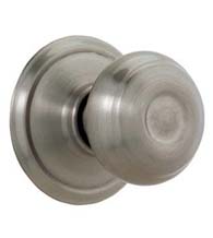 The traditional design of Schlage's Bell Knob makes it an excellent choice for anyone looking for a classic look. It is made out of solid brass and comes in bright brass, antique brass, and satin chrome finishes. It is available in a ANSI grade 2 keyed lock function. It fits standard door cutouts and has an adjustable backset for 2-3/8 inches or 2-3/4 inches. It is adjustable for 1-3/8 inches up to 1-3/4 inches door thicknesses.