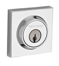 The Contemporary Square Deadbolt is available in polished chrome, satin nickel, or venetian bronze finishes. Choose from a single cylinder or a double cylinder. This Baldwin Reserve Deadbolt has a lifetime mechanical warranty and a 25 year finish warranty. It will fit most pre-drilled doors.