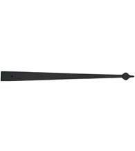 The 24 Inch Spear Tip Smooth Iron Dummy Strap Hinge is sure to give an old world charm to any home door, gate, shutter, or garage door without the need of installing working hinges or replacing existing hardware. This dummy hinge strap comes with a smooth iron finish that is typical of early American styling, with a flat black appearance which simulates the hardware as it was originally forged.