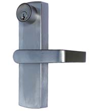 This is a Night Latch Function Handleset (Entry by turning key. Key does NOT unlock panic exit device. Key unlatches the exit devise when turned so you can open the door. ) For use with PDQ 4200 Touch Bar Rim Exit Devices, PDQ 4200 Vertical Rod Exit Device and other manufactures Panic Devices. Available in Aluminum, Dark Bronze (Duro) or Polished Brass finish. Packaged with rim lock cylinder, mounting hardware, instructions, and 2 keys.