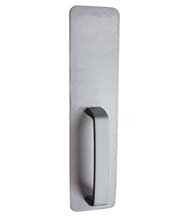 Pull plate for Exit Devices. Used to cover a pre drilled bore hole. This pull plate is used when installing a Panic Device on doors with pre drilled bore holes where an exterior door pull is desired for entry if the panic device is dogged.