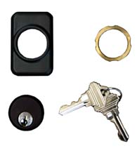 1" brass mortise cylinder lock with mounting pad. Normally used with concealed vertical rod panic devices to open door from exterior. Available in aluminum or dark bronze finish.
