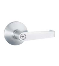 This is a Storeroom Function Lever (lever is fixed, entry by key only) for Global TH1100EDTBAR Touch Bar Rim Exit Devices. Packaged with mounting hardware, instructions, and 2 keys.